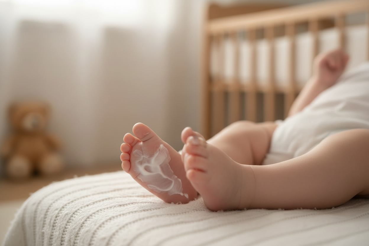 Apply as needed — after baths, during dry spells, or whenever skin feels tight or irritated. For babies, a small amount on cheeks or hands is perfect for daily gentle care.